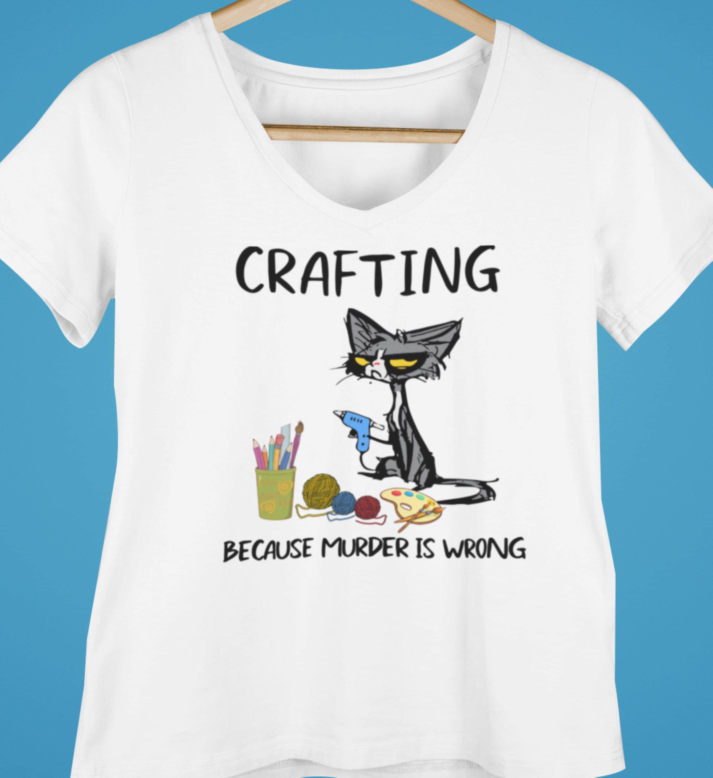 Fun "CRAFTING...BECAUSE MURDER IS WRONG" T-Shirt. Great gift for the crafters!