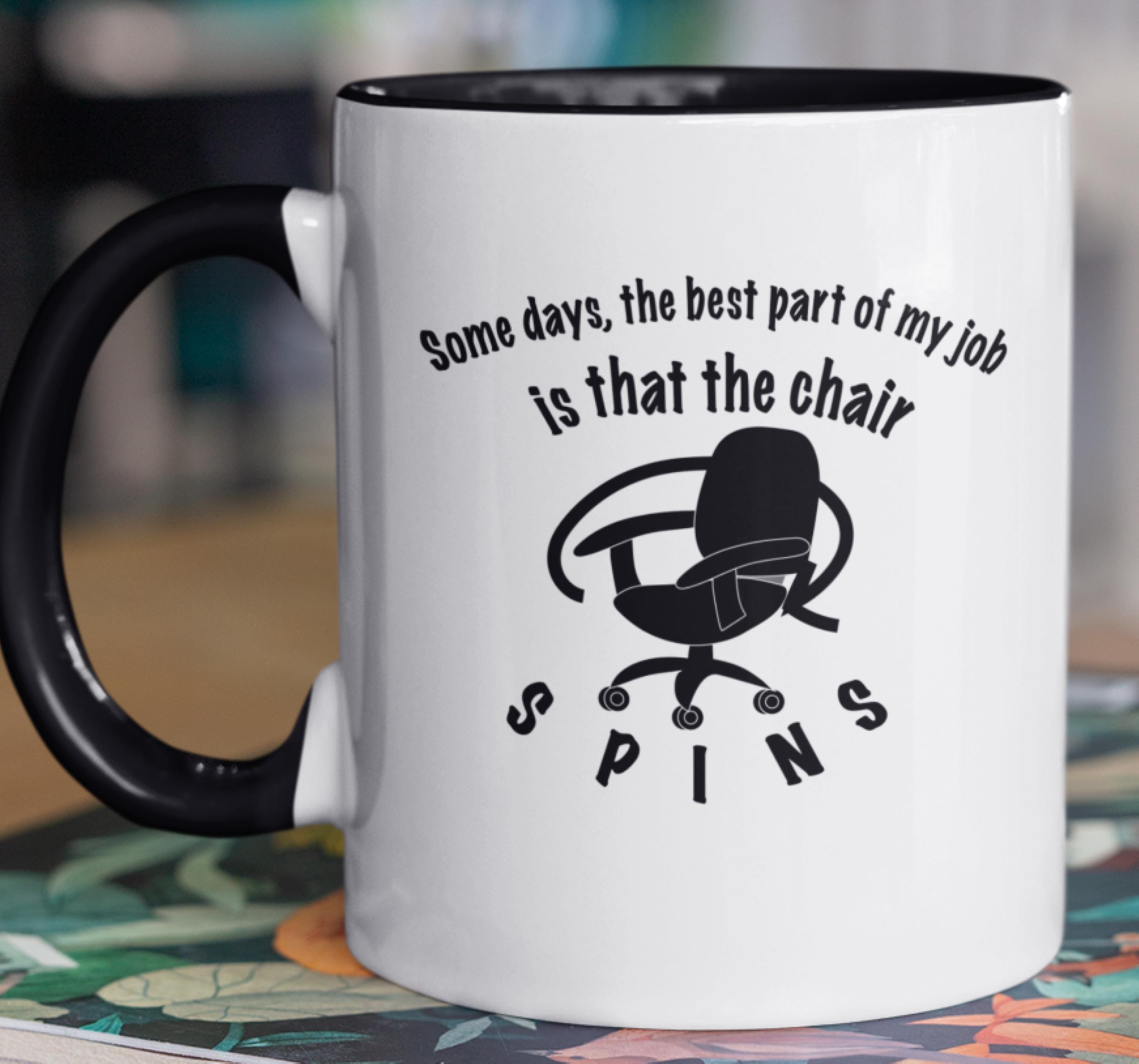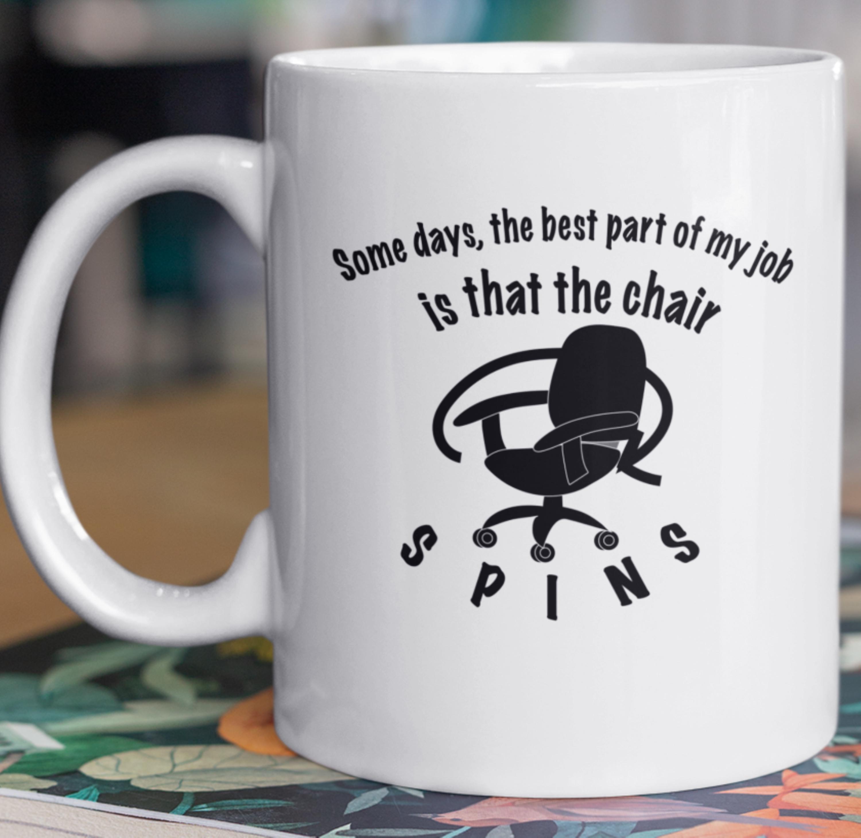 Fun Gift! "Some Days the Best Part About my job is that the Chair Spins" 11 oz Coffee Mug.