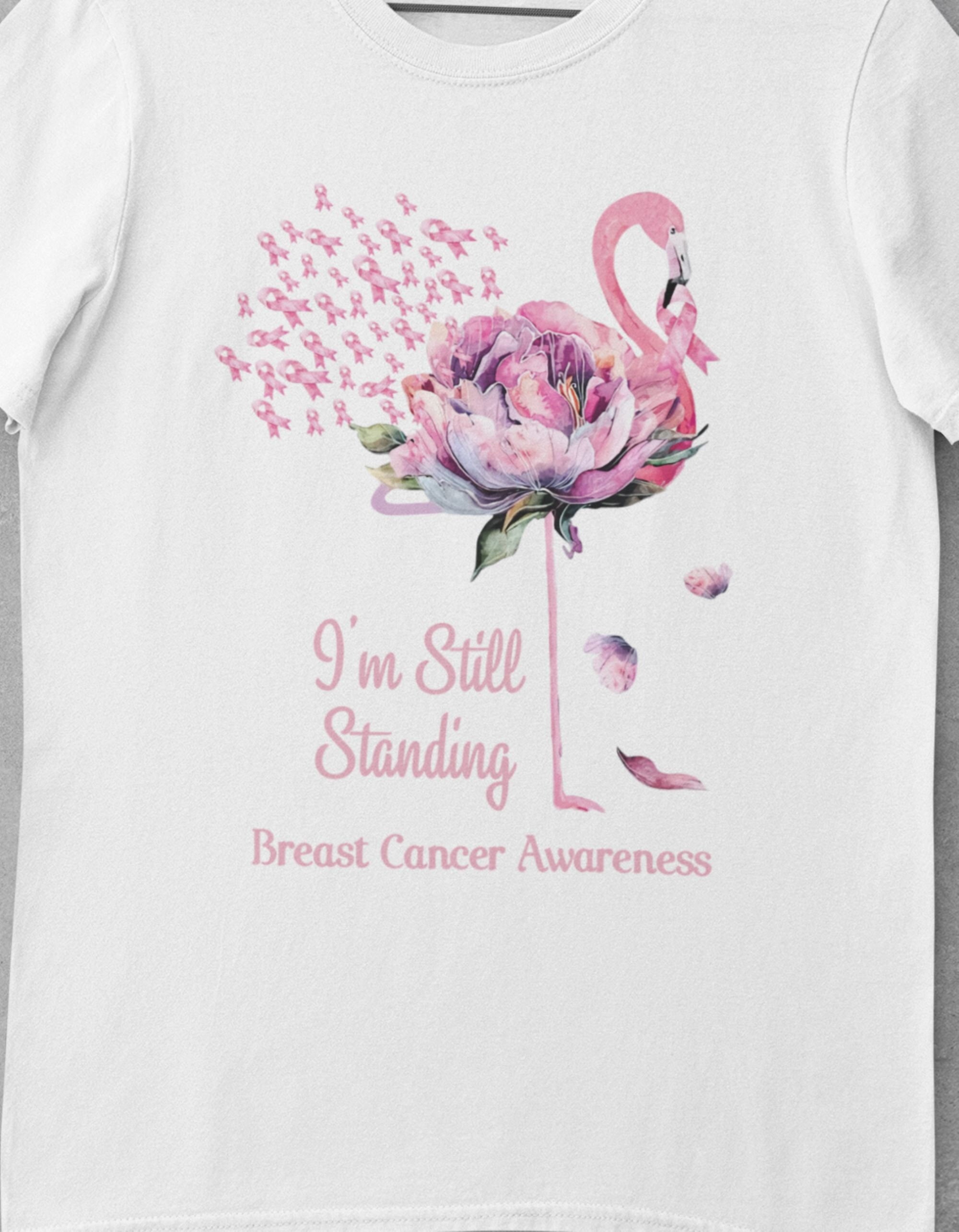 Pretty T-shirt for Breast Cancer Survivors.....Flamingo with Breast Cancer Awareness Ribbons.