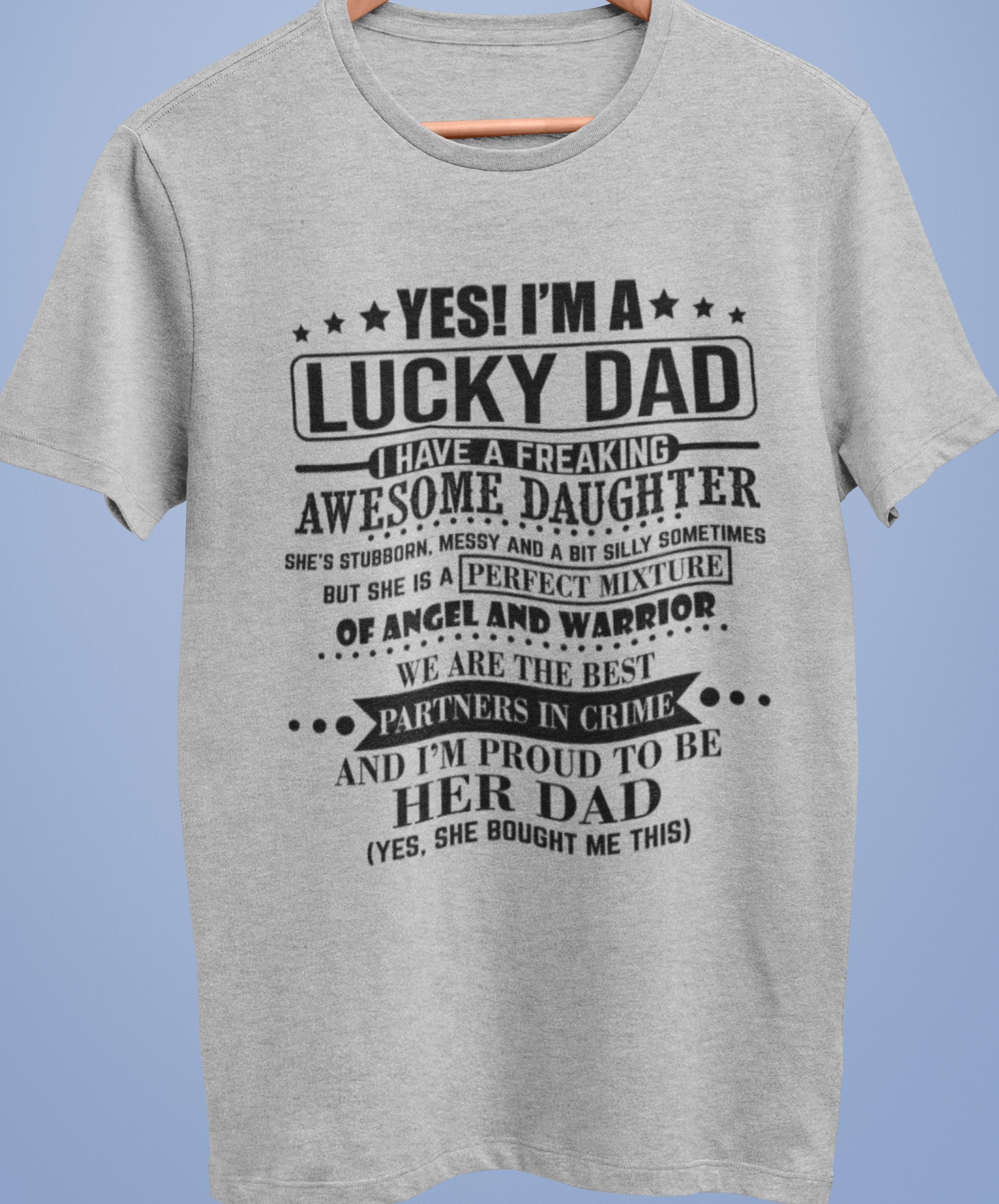 Fun gift for Dad "YES! I'm a Lucky Dad, I have a Freaking Awesome Daughter, She's Stubborn, Messy and a Bit Silly Sometimes, but she is a Perfect Mixture of Angel and Warrior. We are the Best Partners in Crime and I'm Proud to be her Dad. Anti-Social Butterfly" Fun and Pretty T-Shirt for those 'not so social' ones! (YES, SHE BOUGHT ME THIS)
