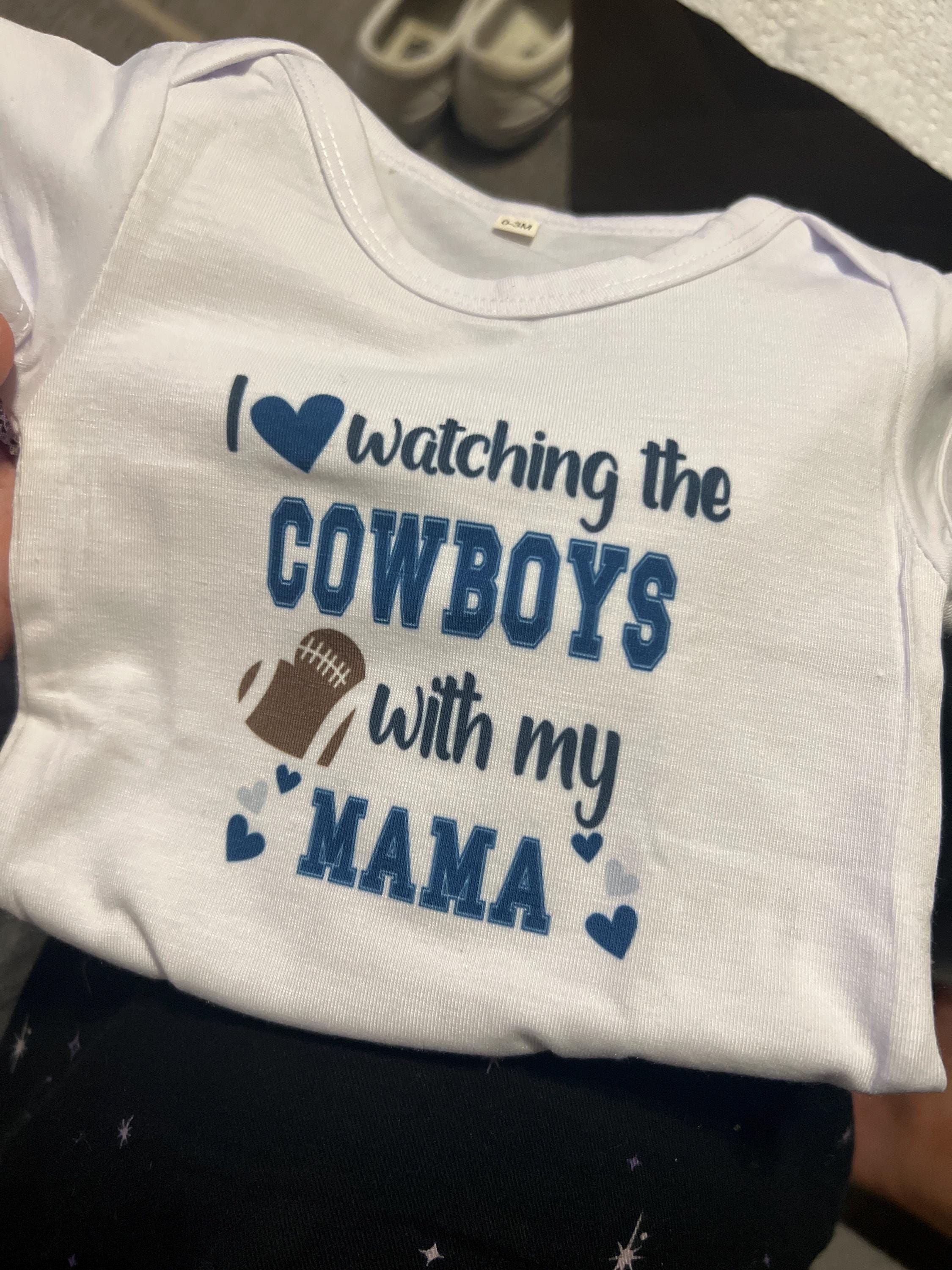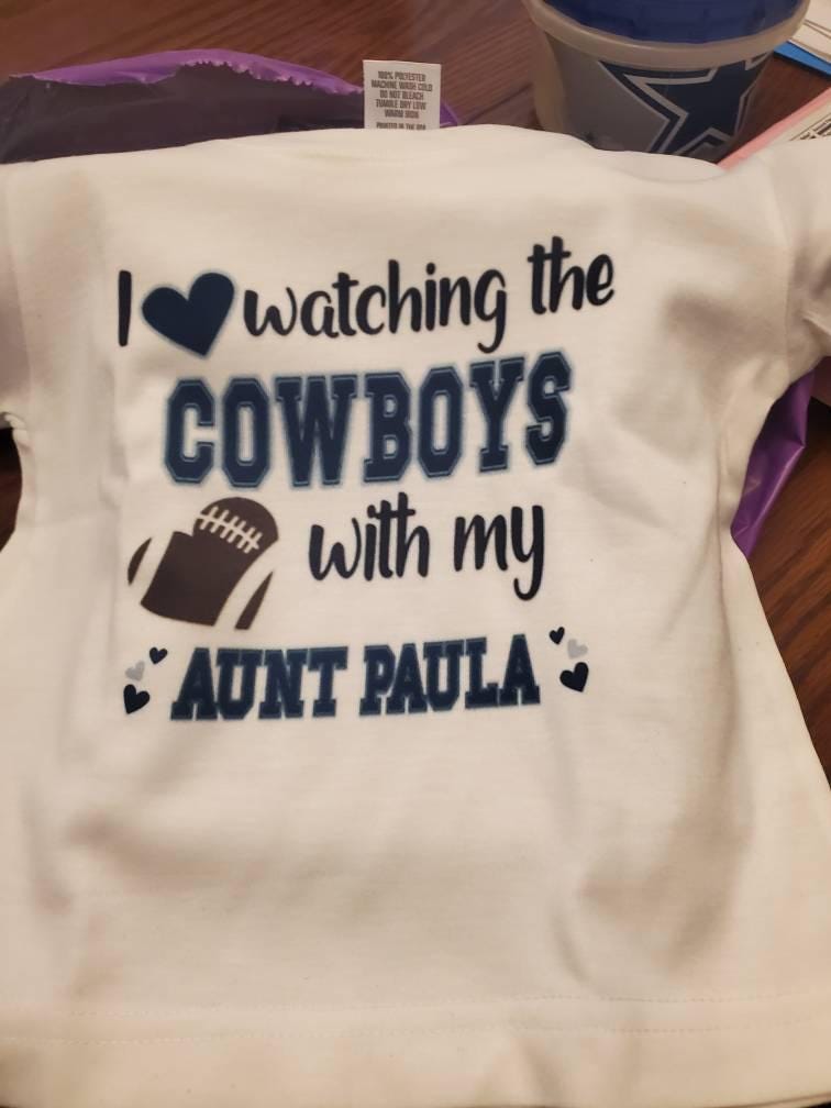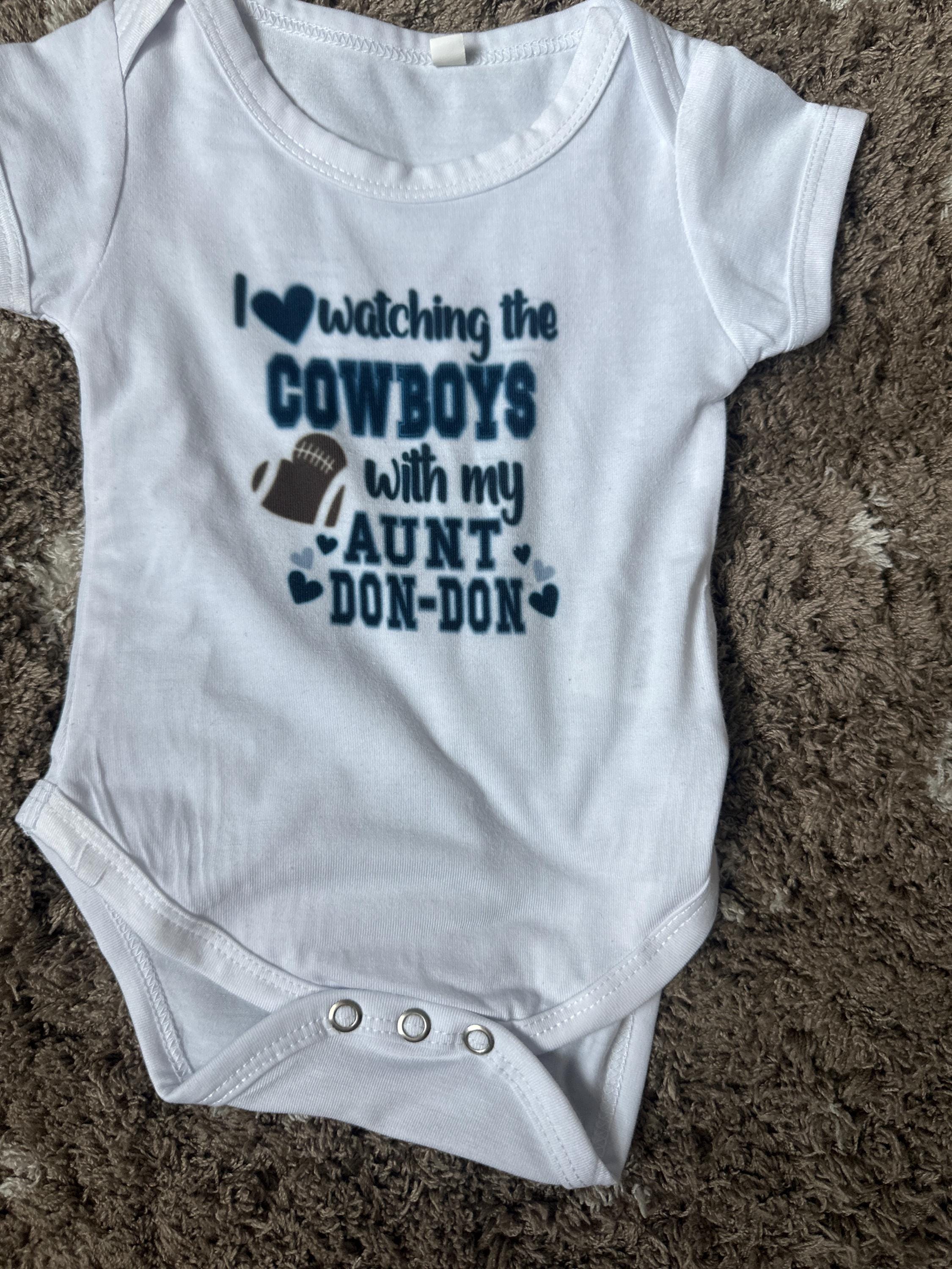 Cute "I Love Watching the Cowboys with my Auntie (or Papa or Grandpa or Daddy or Mama or PawPaw or Nani)" infant Bodysuit or Toddler T-Shirt.