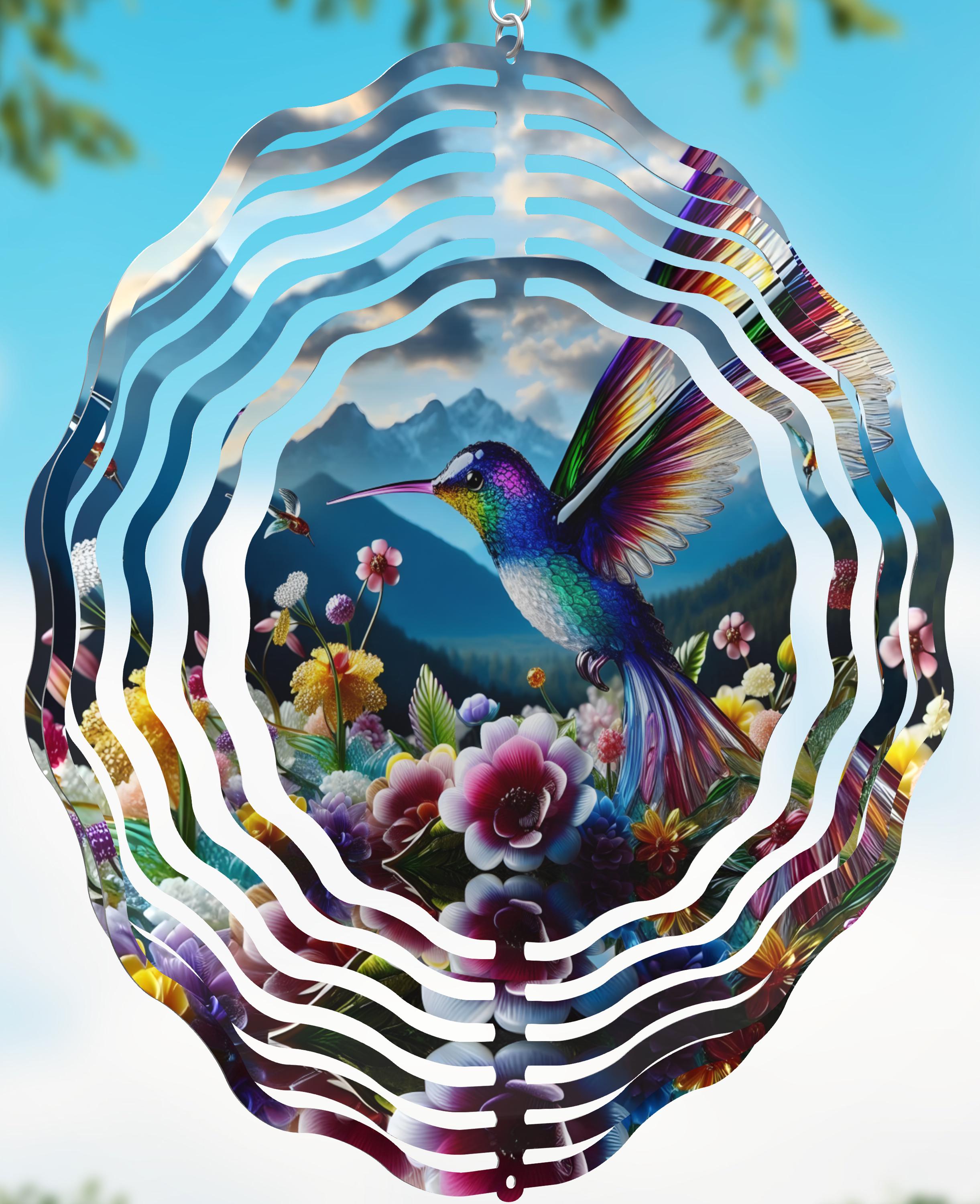 Imagine this absolutely beautiful hummingbird in a floral setting spinning and swaying in the breeze in your garden or ... anywhere!