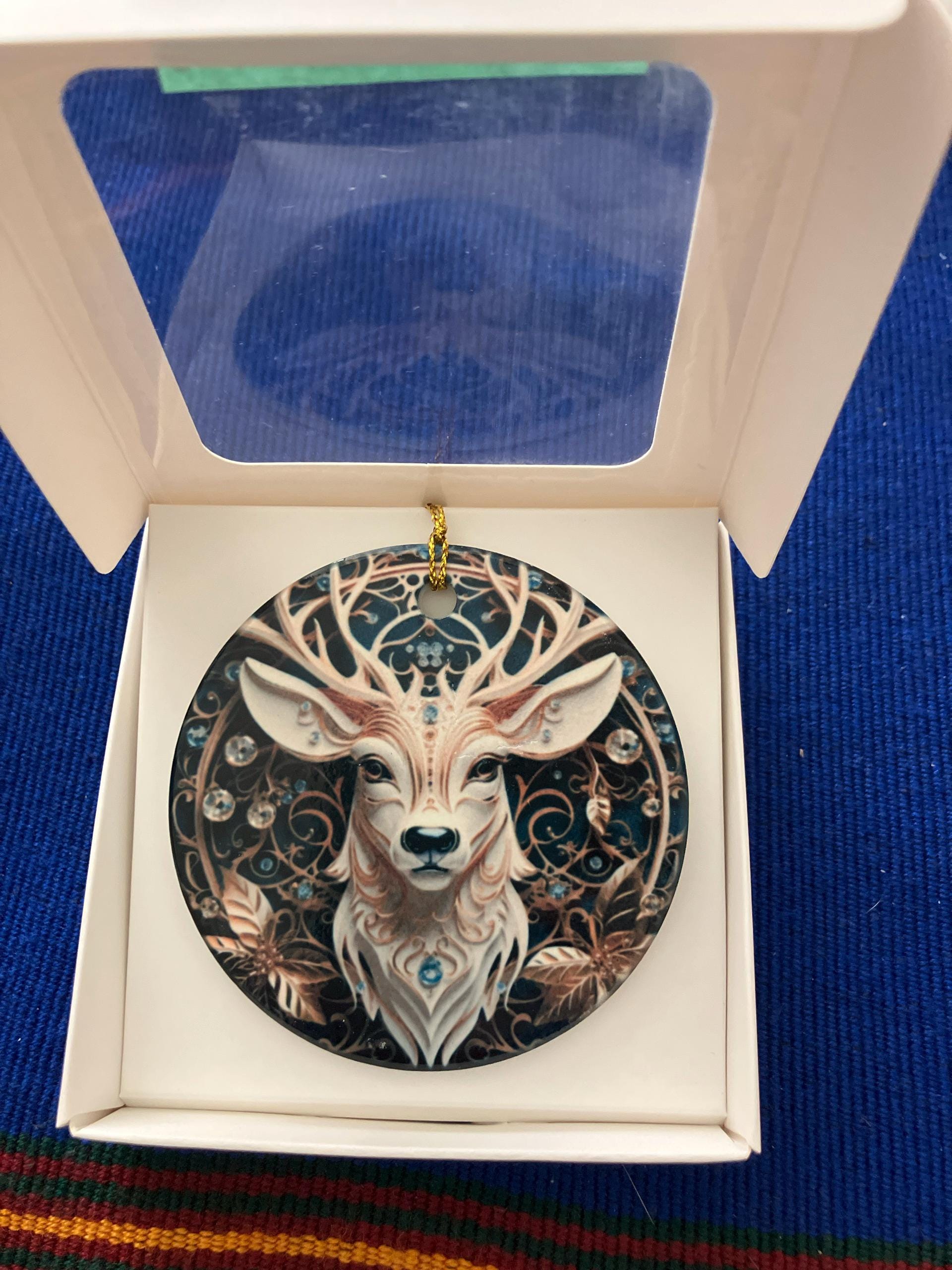 Gorgeous 3-D Look Reindeer Ornament. Includes gift box.