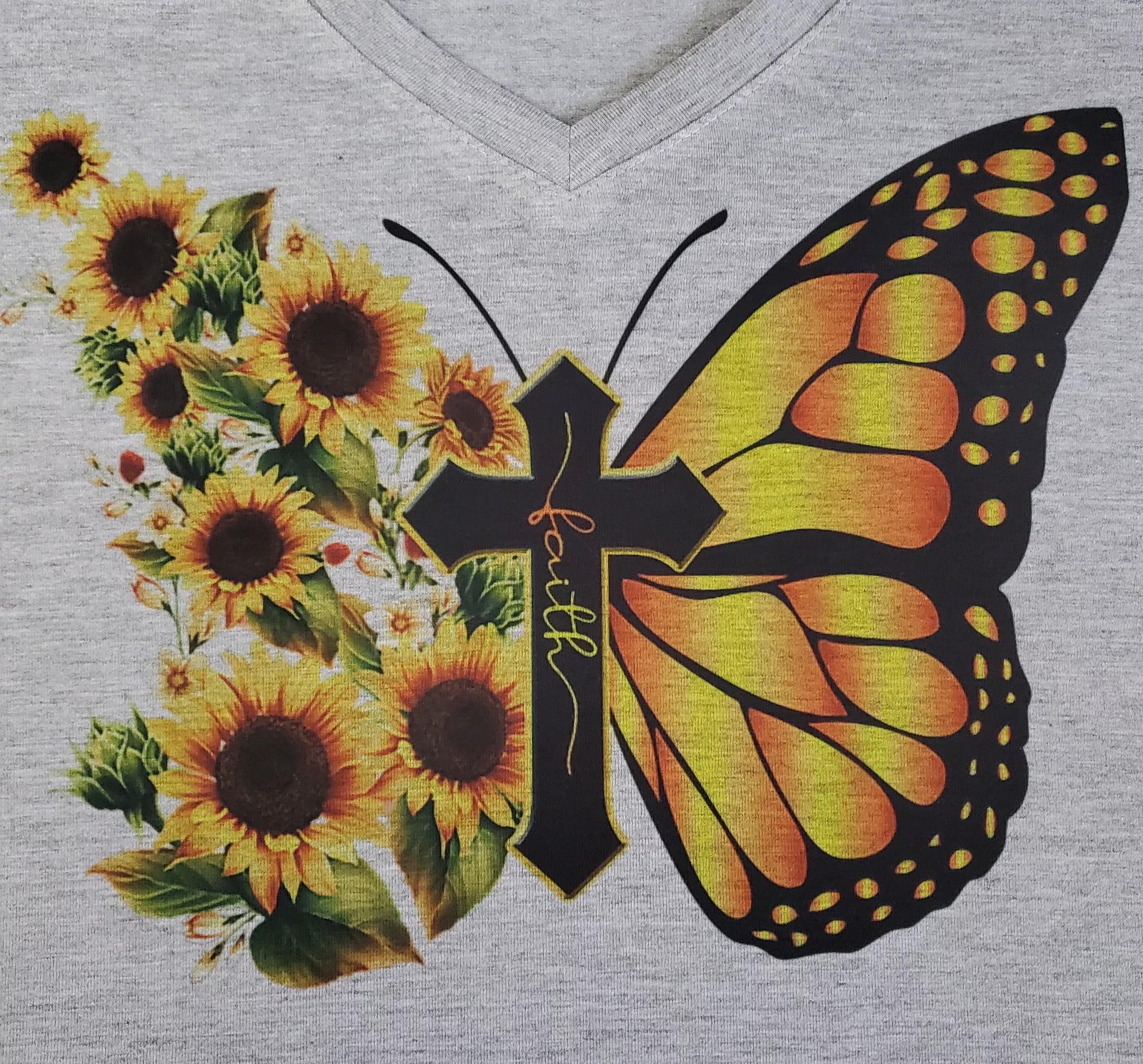 Need to reduce my In-Stock inventory to free up room in my shop. I have ONE SMALL and ONE XL White V-Neck AND ONE 2XL Heather Gray Slightly Fitted "FAITH BUTTERFLY" Shirts Available. Other sizes/colors will continue to be available to order at regular price, each shirt made as they are ordered.