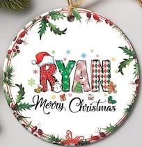 Personalized Kids' Christmas Alphabet Letters Ornament with Name. Includes Gift Box. Can be printed on both sides or personalized message can be added to back.