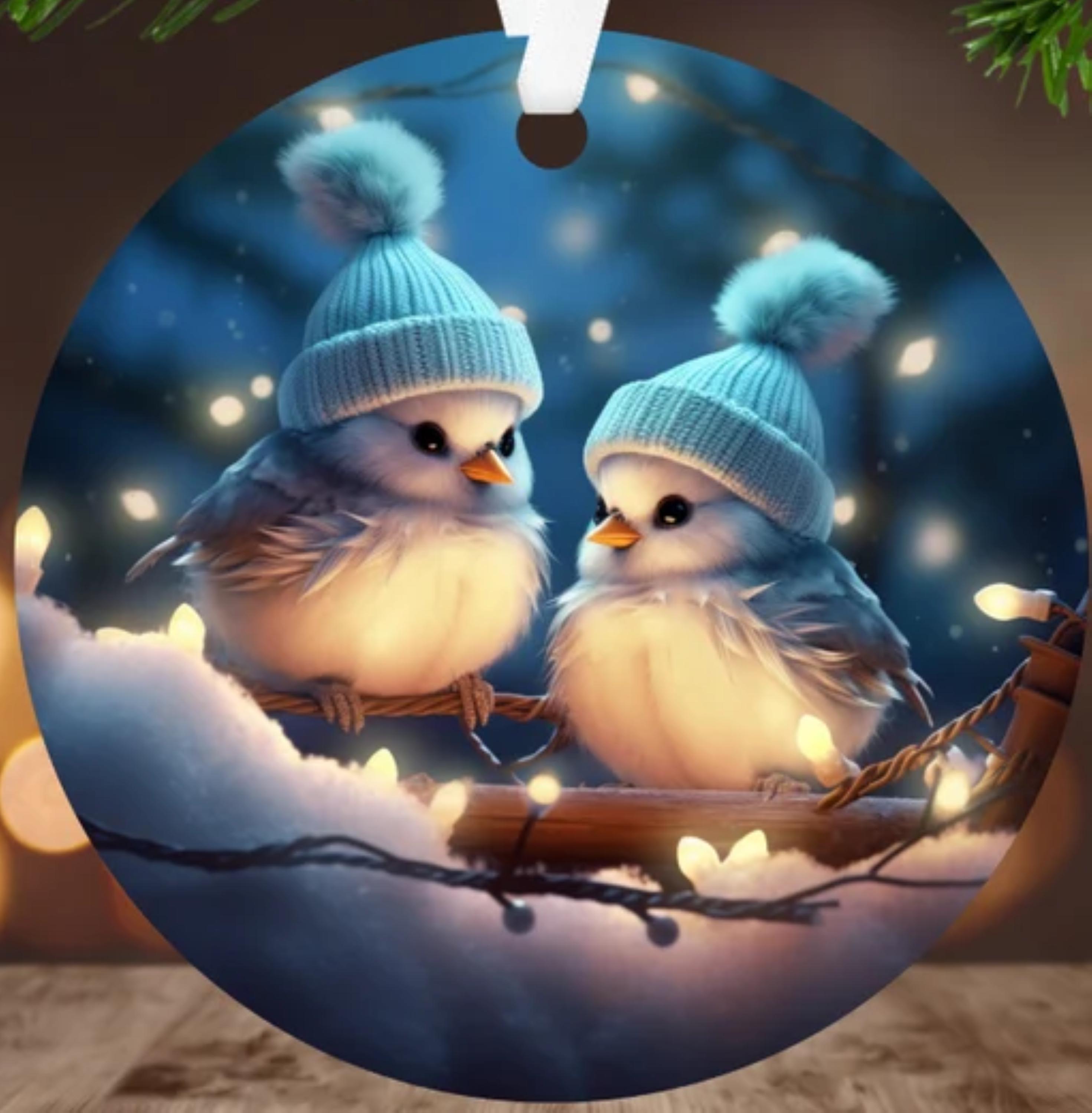 Cute Pastel Birds Ornament. Includes gift box.