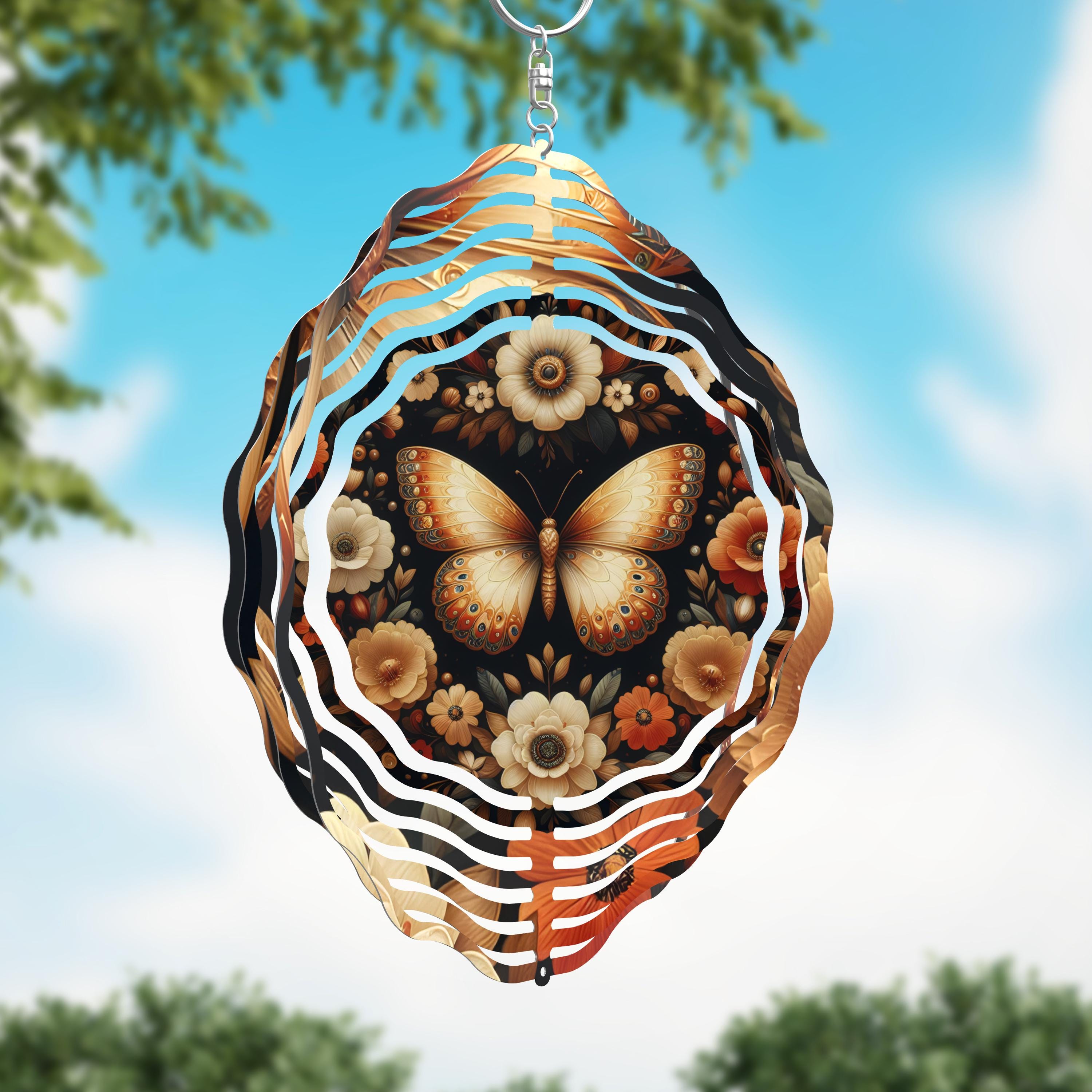 Built to withstand all weather, the 10" wind spinners are made of durable laser-cut stainless steel. Includes swivel hanging hook.