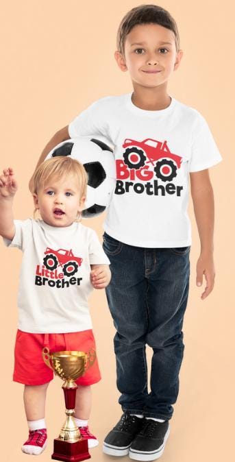 Big Brother & Little Brother with Monster Trucks! Truck can be any BLUE or RED (Please check with me if you prefer another color).